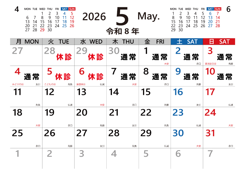 ゴールデンウィークの休診のお知らせ
